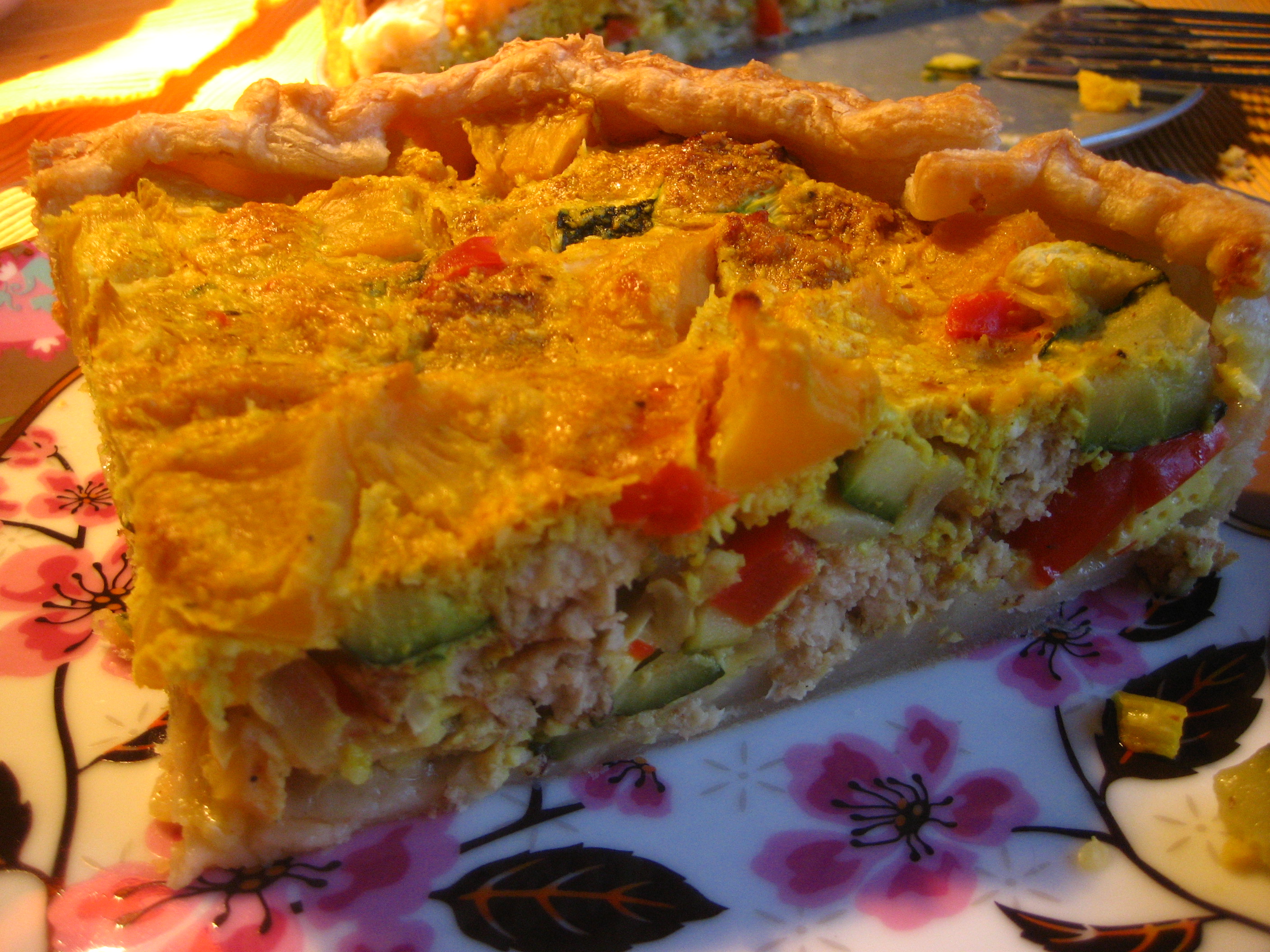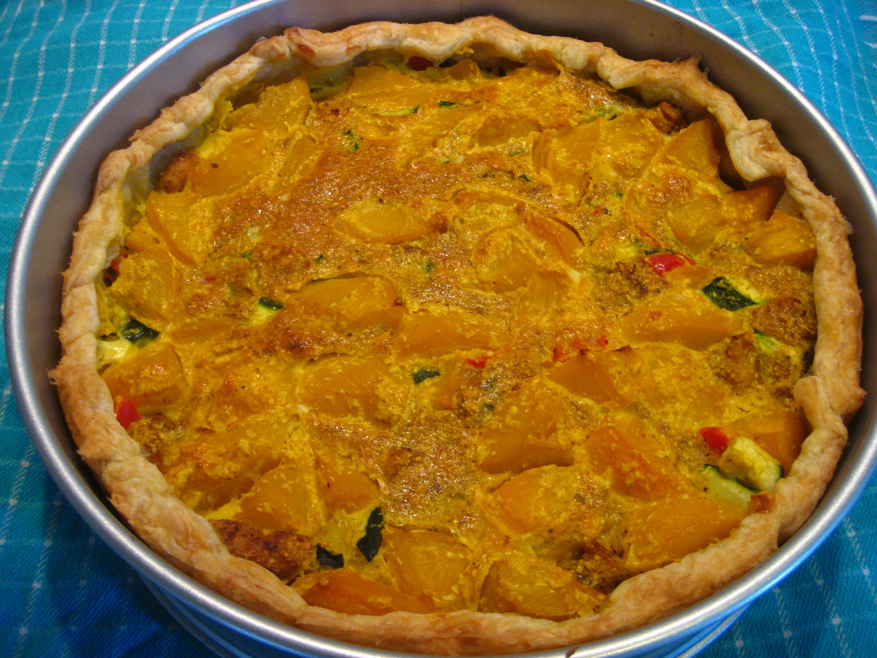 – Giet als laatst het ei-kerrie-kokos mengsel over de taart. Verdeel goed.