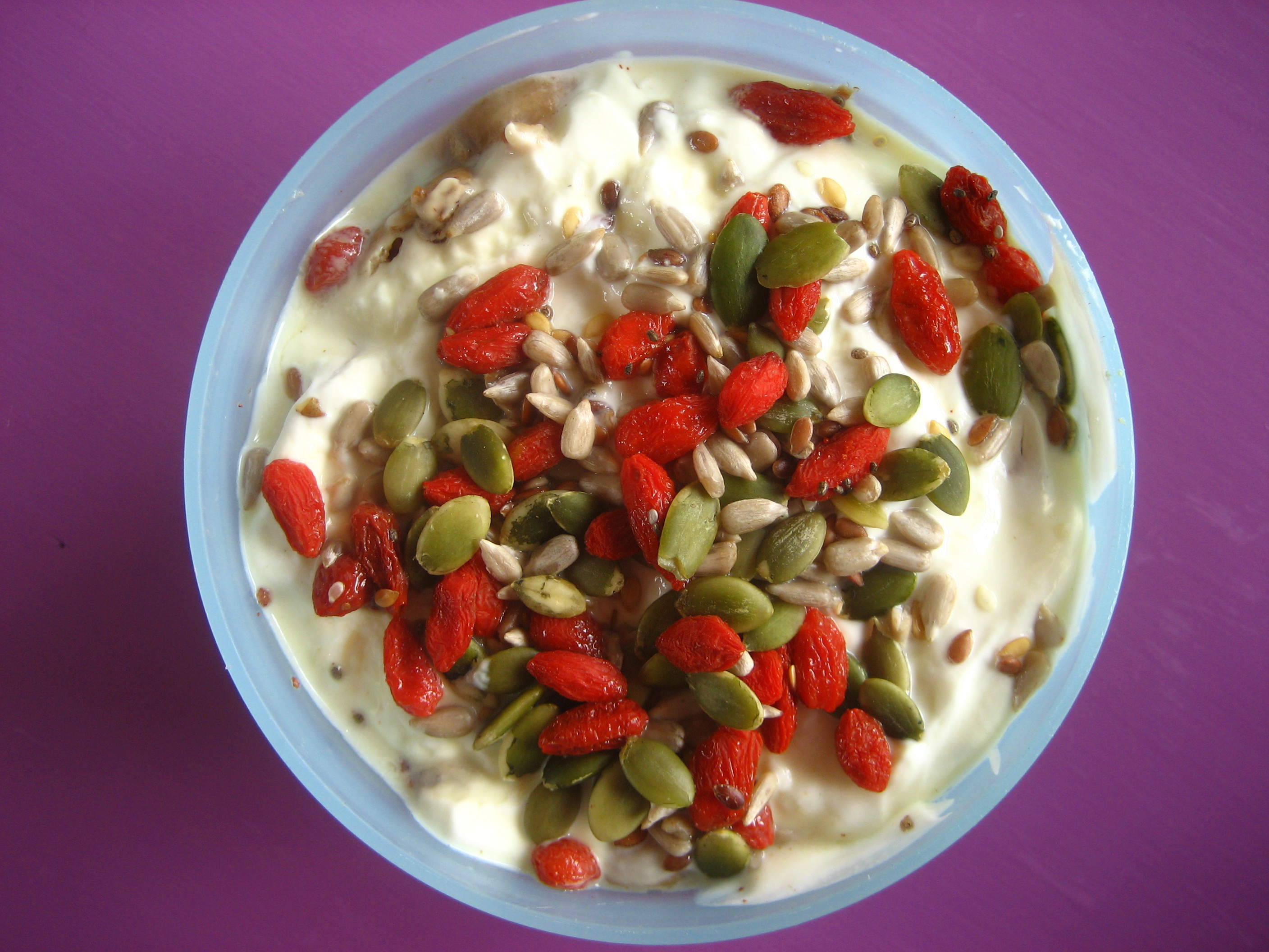 – Strooi de volgende ochtend de gemengde zaden en pitten over je mengsel, even doorroeren en klaar is je nieuwe ontbijtverslaving!