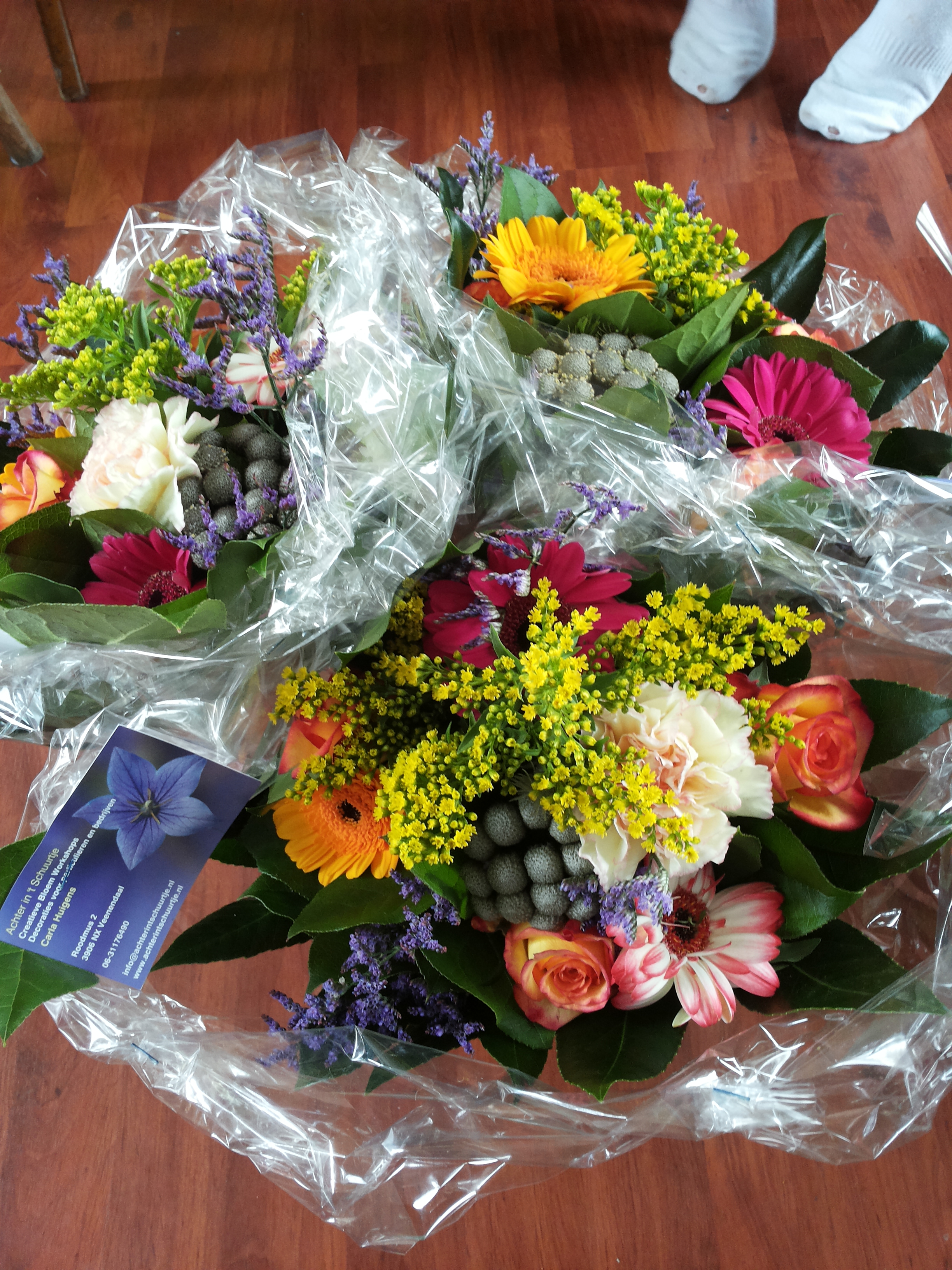 Wat je hiervoor nodig hebt? Men neme: een huiskamer, een groep zeer enthousiaste lopers, een leuke route van zo’n 10 km en héél veel lekkers na (liefde voor lopen gaat ook door de maag!). Tel daar nog een portie koffie met kloten en een prachtige bos bloemen bij op en je dag kan niet meer stuk.