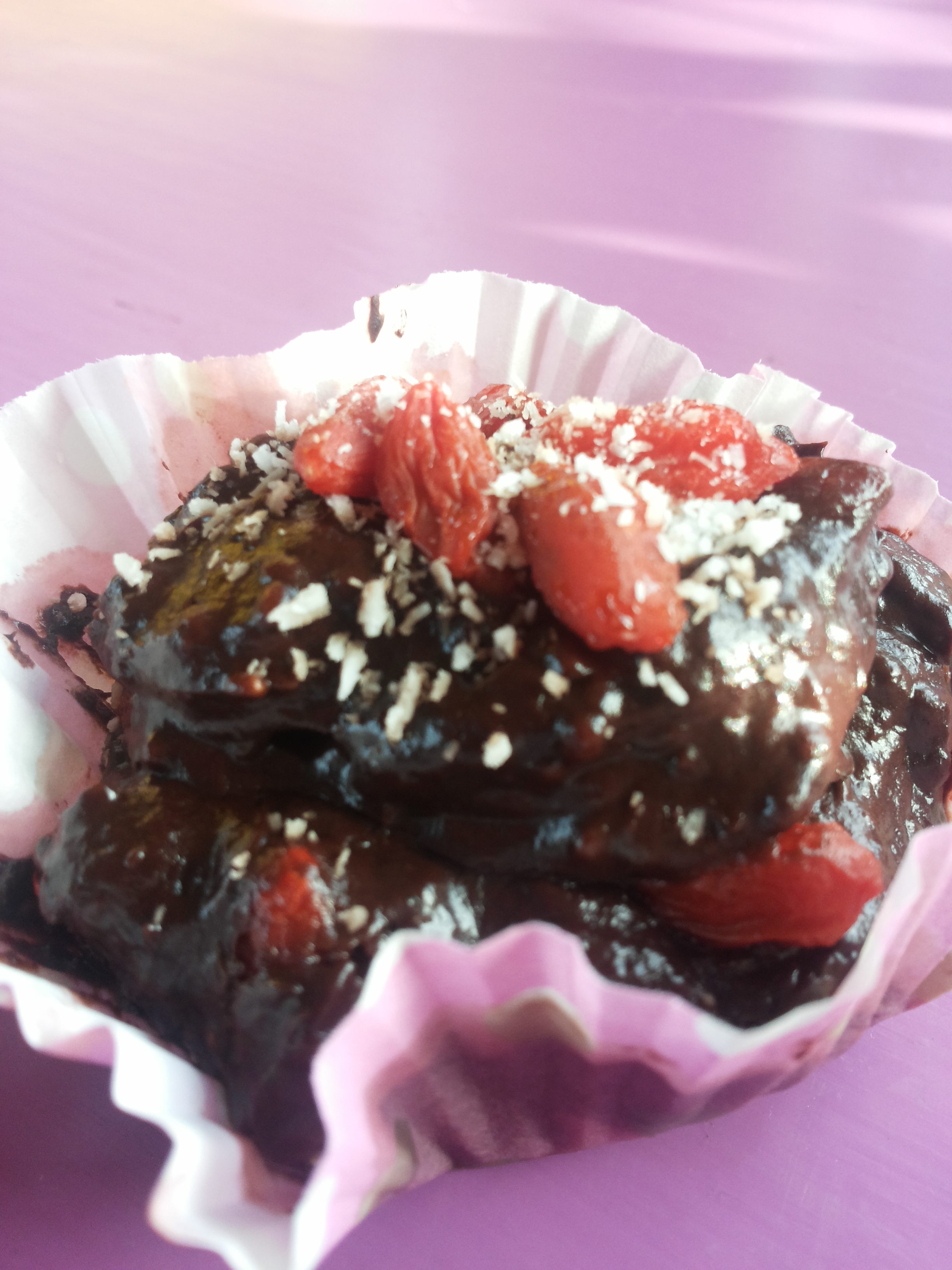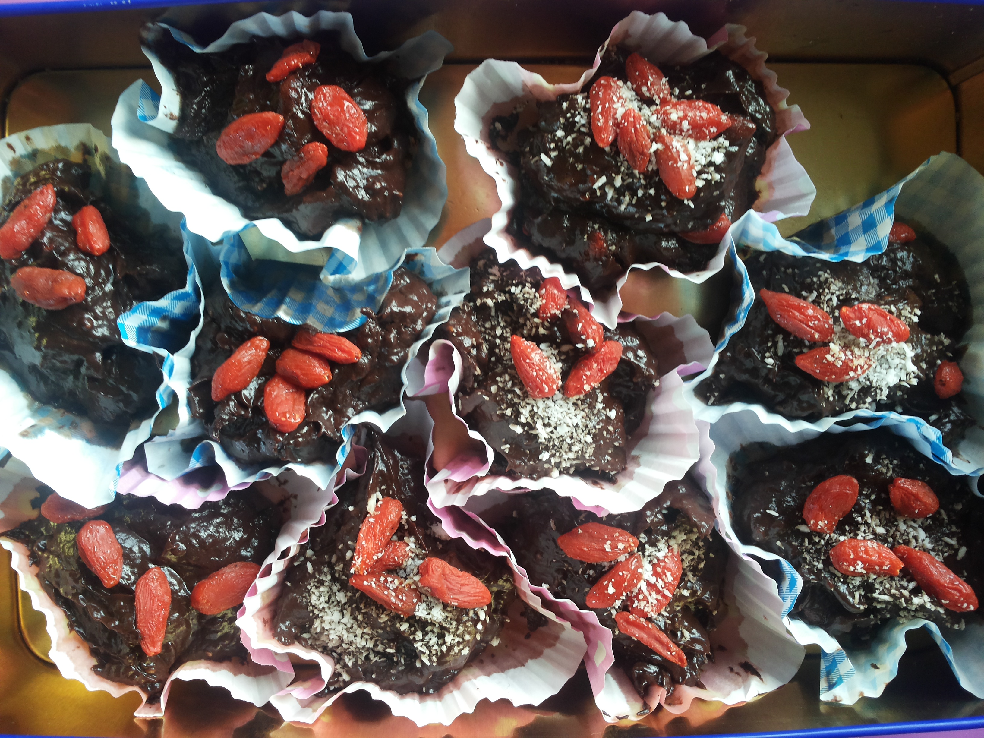 – Verdeel de mousse over 15 muffinvormpjes en maak evt. af met een paar extra gojibesjes en wat kokosrasp.