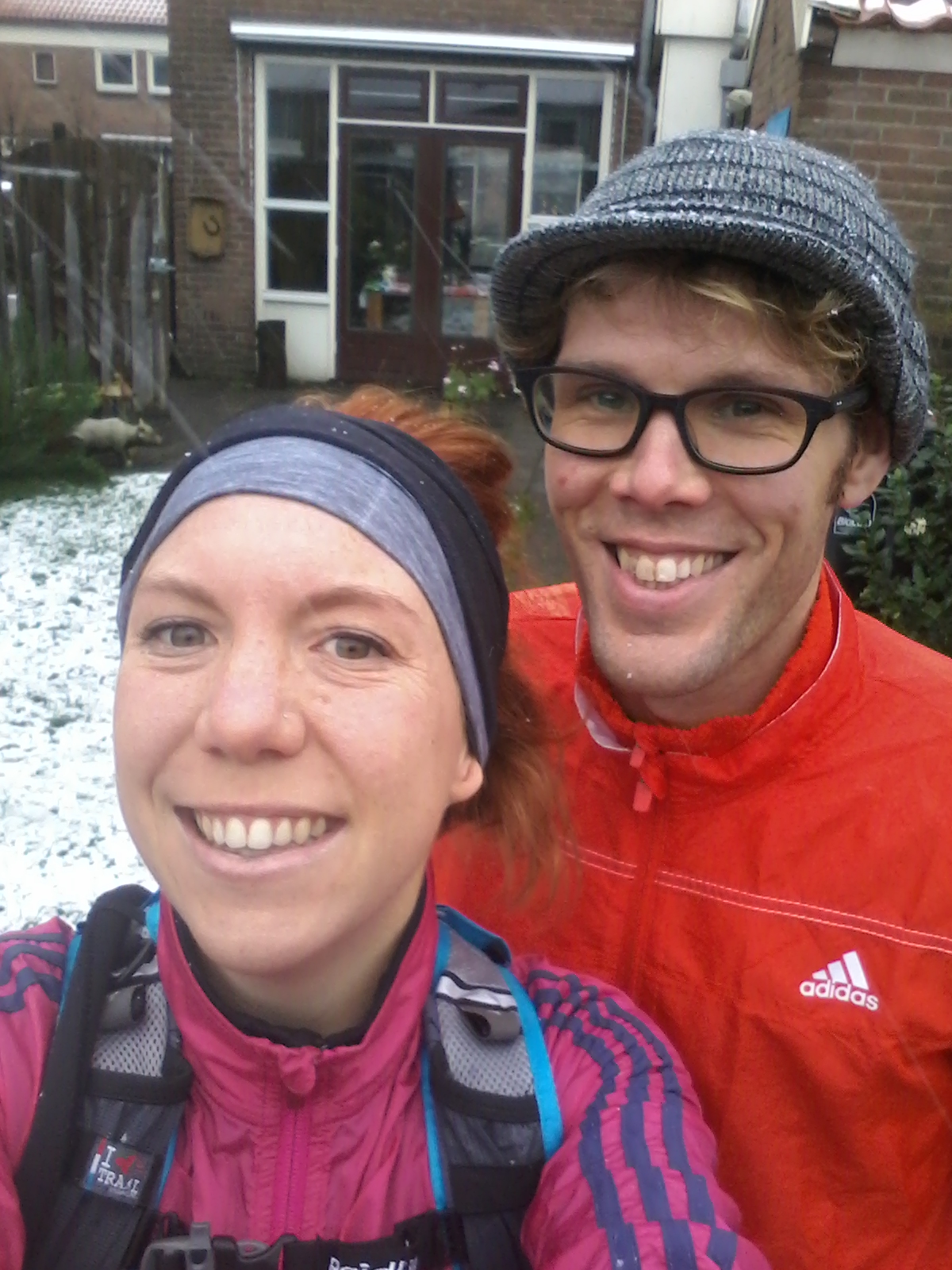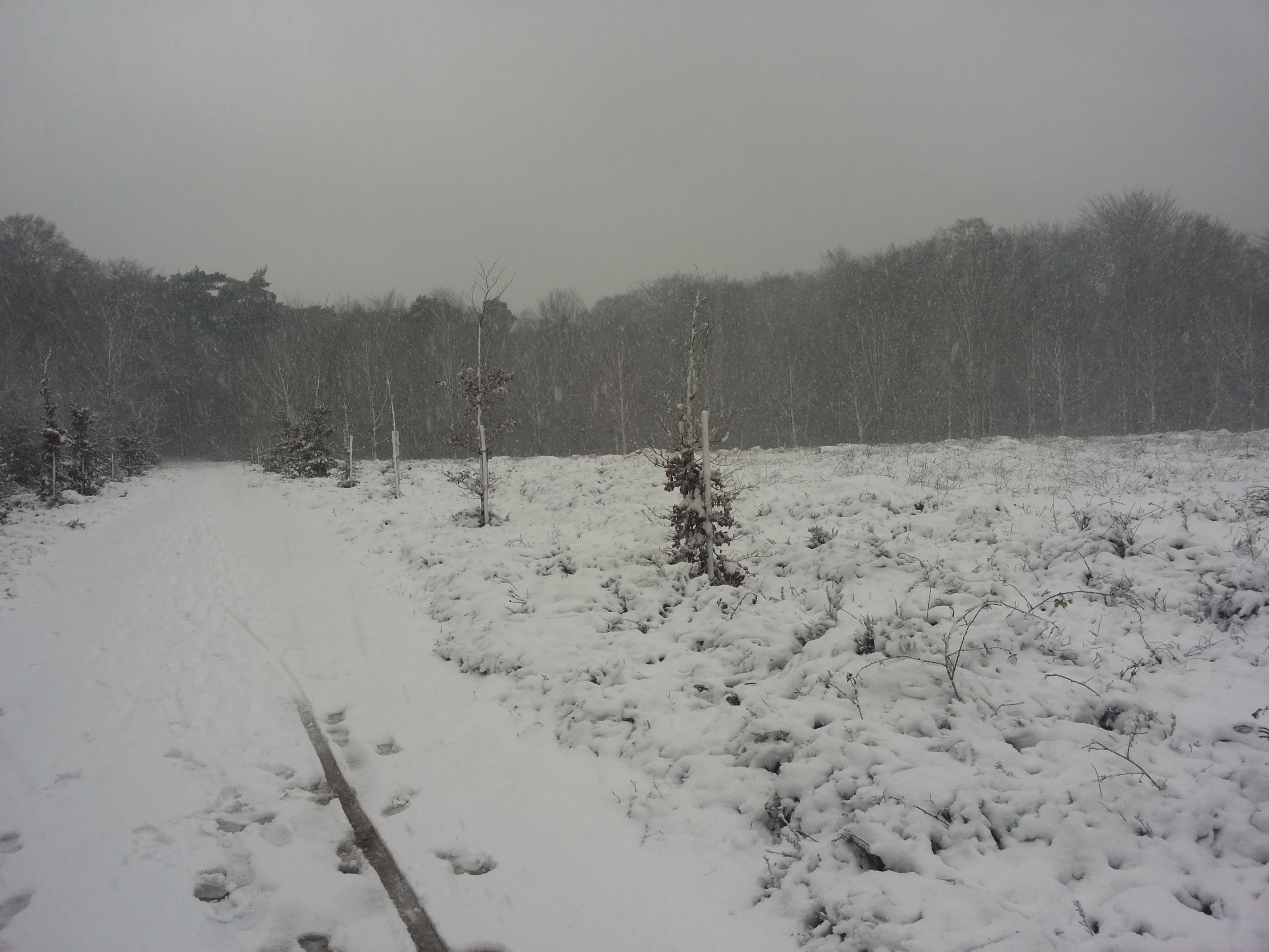 20141227_134645Gelukkig is er naast een wil ook nog altijd een weg. En hoewel die weg zich stukje bij beetje steeds verder vulde met sneeuw, konden vriend en ik er toch niet omheen dat we gewoon heel veel zin hadden om te lopen. Evert met zijn spinningfiets mocht in het zonnige Italië dan wel naar ons lonken, de gedachte aan een bos gehuld in winterwonderland gaf uiteindelijk de doorslag om alsnog zelf de loopschoenen aan te trekken. Onder het mom van:  Als de Derde Kerstdagloop niet doorgaat, dan maken we er gewoon zelf een alternatieve Derde Kerstdagloop van!
