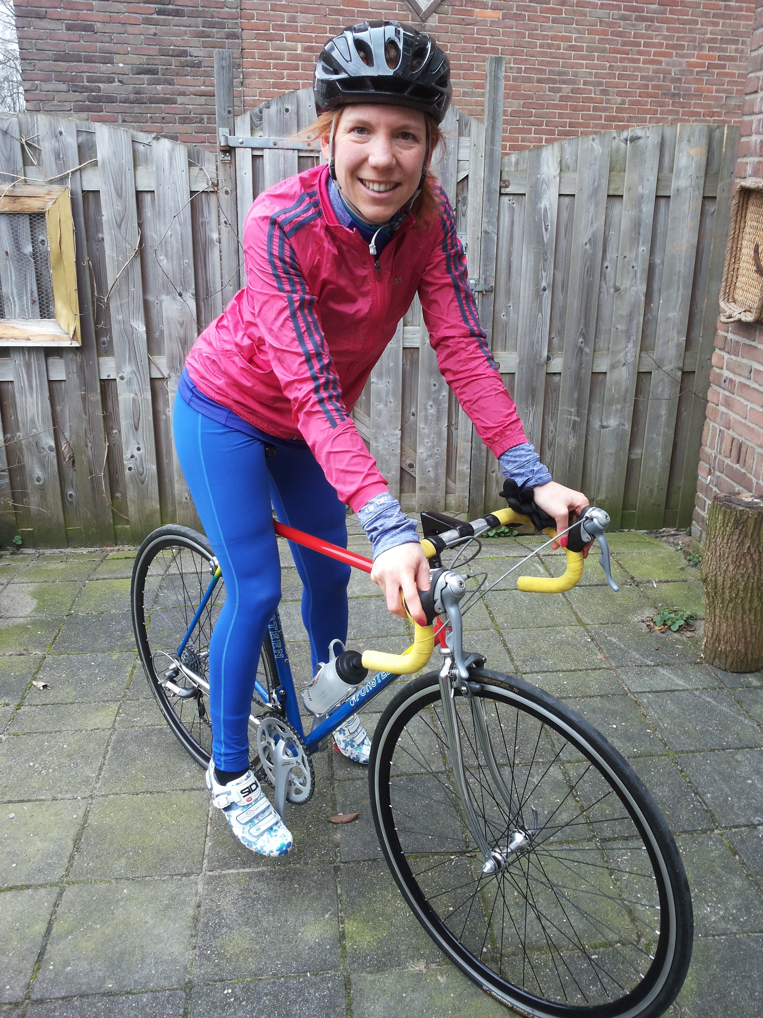 Zo’n 30 kilometer en een dikke glimlach op mijn gezicht later stonden we weer thuis. ‘Morgen weer!’, was mijn eerste gedachte! En zo geschiedde. Evenals dinsdagmiddag: mijn vuurdoop om alleen een rondje te maken. De avond ervoor had ik nog verplicht een youtube-filmpje over banden verwisselen gekeken (“Je moet wel weten wat je moet doen als je lek rijdt”). Na de eerste handeling haakte ik echter al af en ging ik er voor het gemak maar vanuit dat ik heus niet meteen een lekke band zou rijden en dat ik anders vast wel een galante man tegen zou komen die dat even voor mij zou doen. Wederom: niet erg emancipatorisch, maar voor nu wel zo makkelijk. Bovendien was ook hier de paniek voor niks, want ik heb heerlijk met volle bandjes mijn solo-kilometertjes gemaakt en voelde me stiekem best wel een stoere chick zo voorover gebogen op die racefiets. En ja, dat banden verwisselen ga ik echt echt écht nog wel leren!