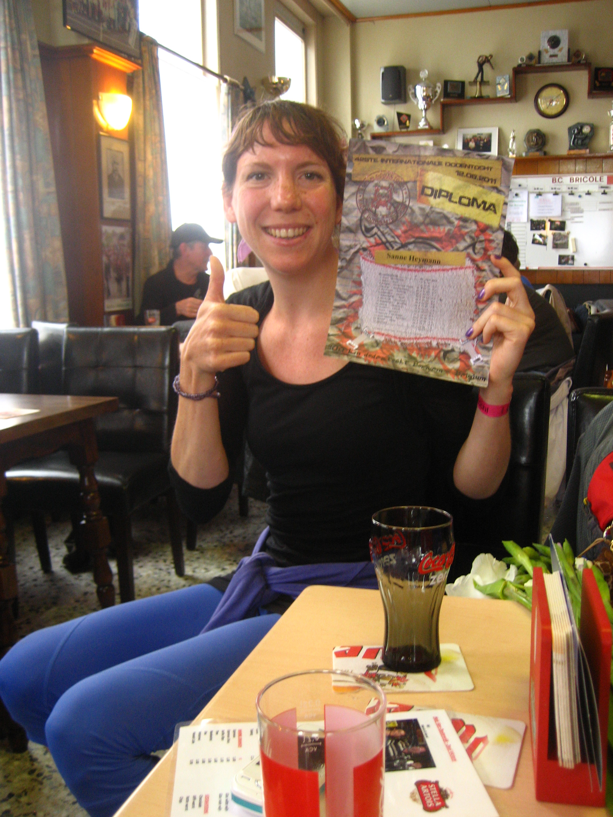 En ja, echt. Ik vond het écht leuk! Zo leuk dat ik mij diezelfde zomer zelfs liet overhalen om met mijn beide ouders de DoTO te lopen. DoTo? Zullen de hardlopers onder ons nu denken. Dé DoTo? Zullen wandelaars met bewonderenswaardige blik aan mij vragen. Ja. Dé DoTo. Of, ook wel beter bekend als de DodenTocht. Een wandeling in België, maar niet zomaar eentje. Een wandeling die voert door de Palm- en de Duvelbrouwerij. Waar je zelfs gratis halve liters weg mag tikken. De enige kanttekening is, dat je hier wel 100 kilometer voor moet lopen. Ehm, wat zegt u? 100 kilometer?! Aan één stuk?! Jawel. 100 kilometer. Aan één stuk. Dat hadden jullie niet gedacht hè? Het meisje dat geen marathon weet te volbrengen, ontpopt zich op wandelgebied ineens als ultraloopster. En zeker wel dat ik de finish heb gehaald. Ik deed er in totaal 21 uur over. Maar al mijn teennagels waren nog intact en op wat gezwollen voeten na, was nergens een blaartje te bekennen. U ziet, oefening baart kunst. En lelijke wandelschoenen make een hoop verschil.